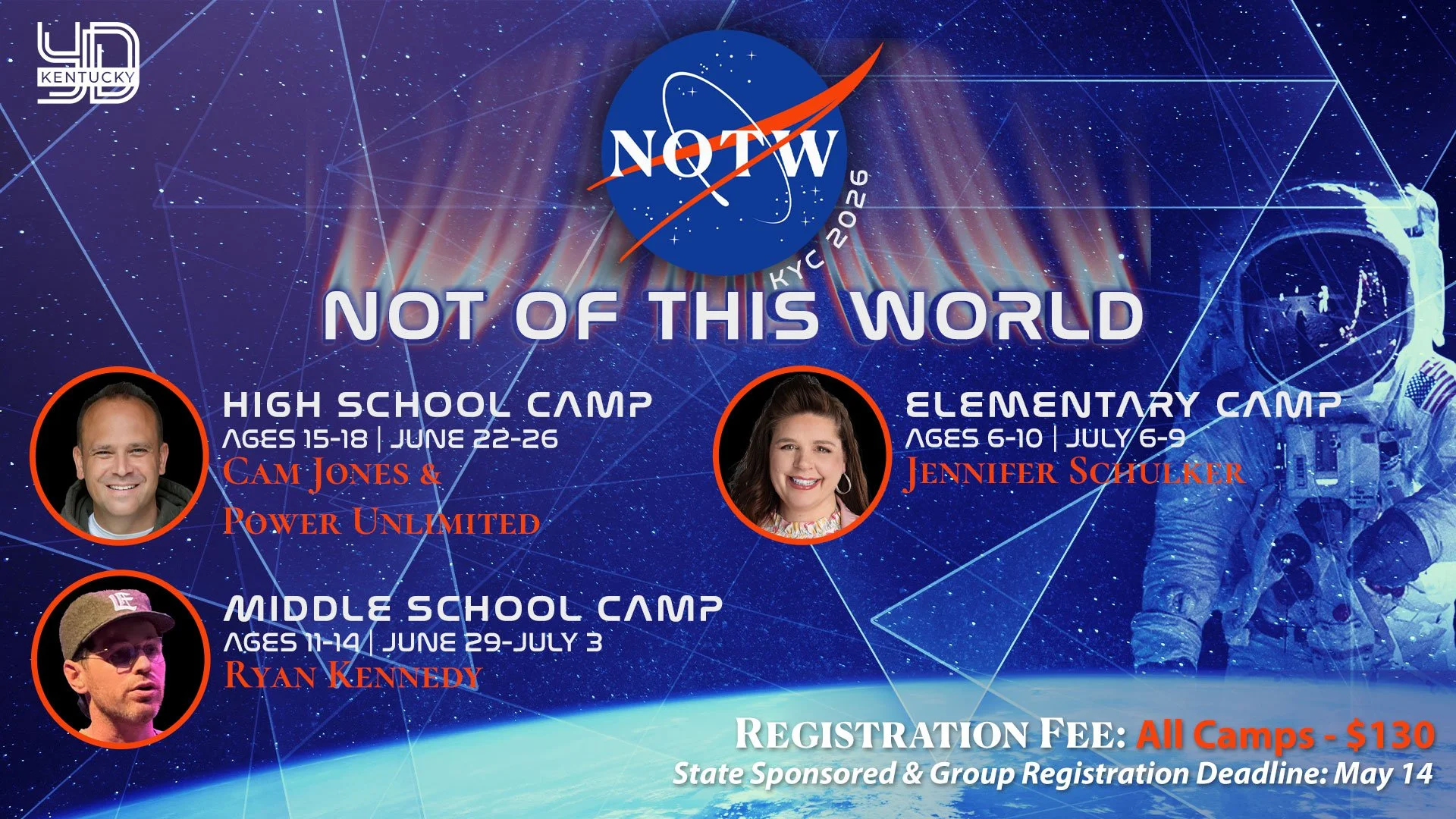 Kentucky Youth Camp 2026 is officially open, and this year we’re going full mission mode. Powerful speakers, life-changing worship, and a theme that reminds us we’re called to live different — Not Of This World (NOTW).